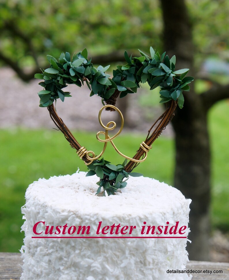 Rustic Greenery Cake Topper For Bride Groom Cake Wedding Reception With Letter Personalization