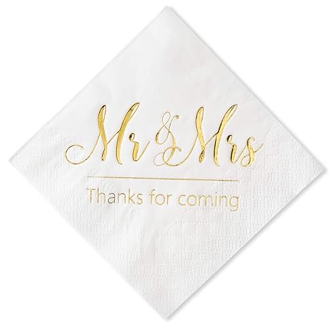 Crisky Wedding Napkins Mr And Mrs Gold Cocktail Beverage Dessert Napkins For Wedding Shower Engagement Party Decorations Wedding Cake Table Decor