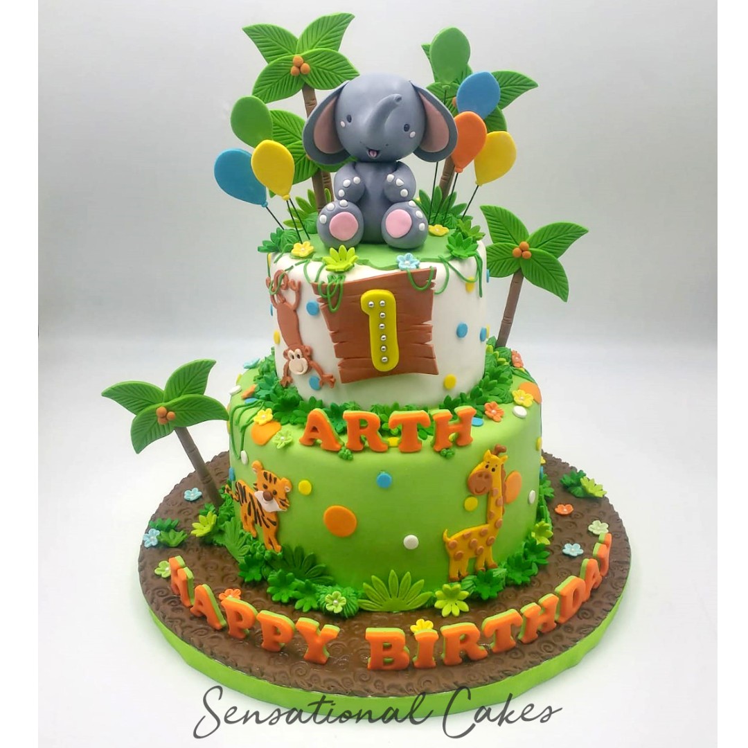 1st Year Elephant Theme Birthday3d Animal Jungle 2 Tier 3d Customized For Boys Kid Birthday Cake Cutecake Charactersugarcraftcake Singaporecake
