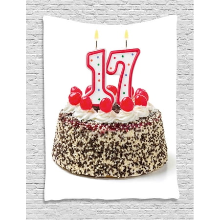 17th Birthday Decorations Tapestry Birthday Cake With Cherries And Sprinkles And Candles Photo Art Wall Hanging For Bedroom Living Room Dorm Decor