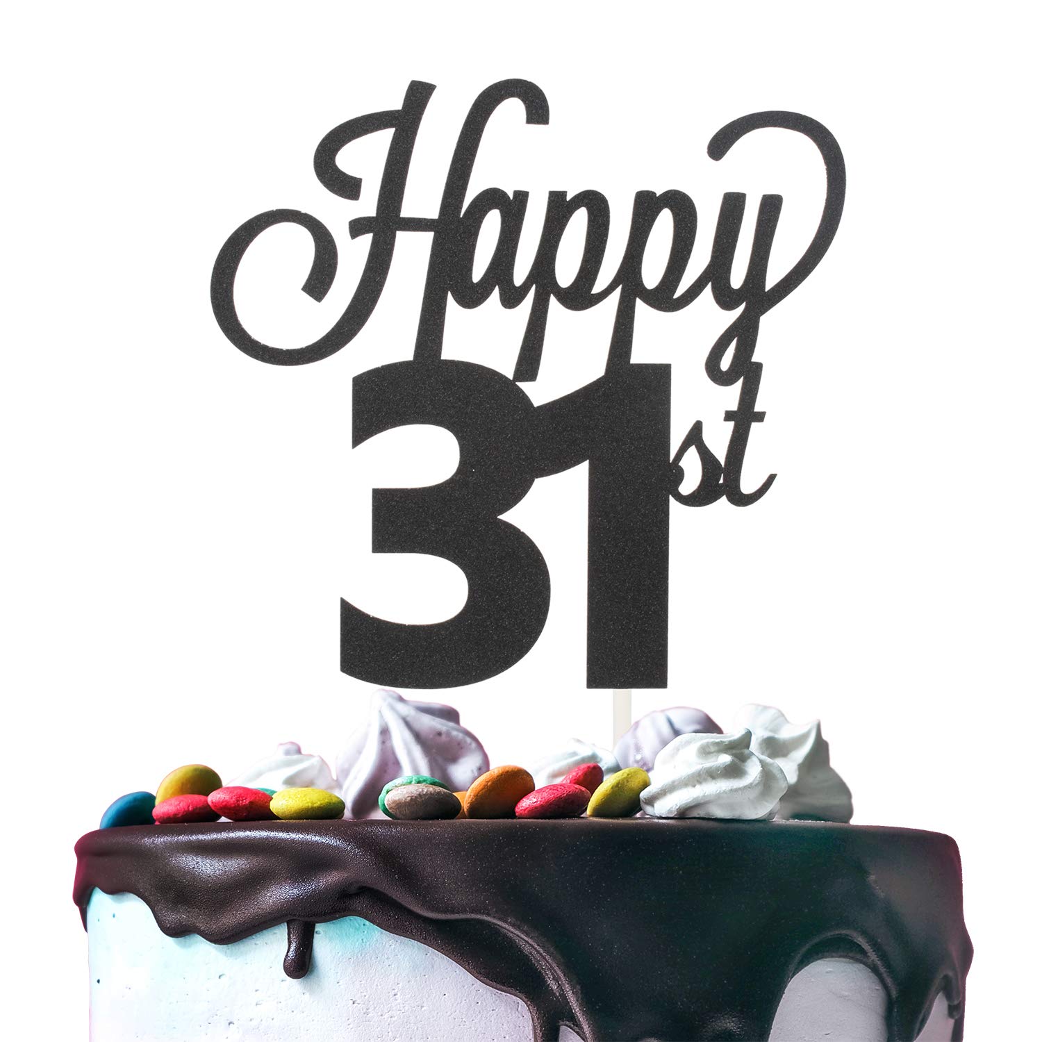31st Happy Birthday Cake Topper Premium Double Sided Black Glitter Cardstock Paper 6 X 8