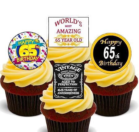 65th Birthday Male Funny Edible Cupcake Toppers Stand Up Wafer Cake Decorations Pack Of 12