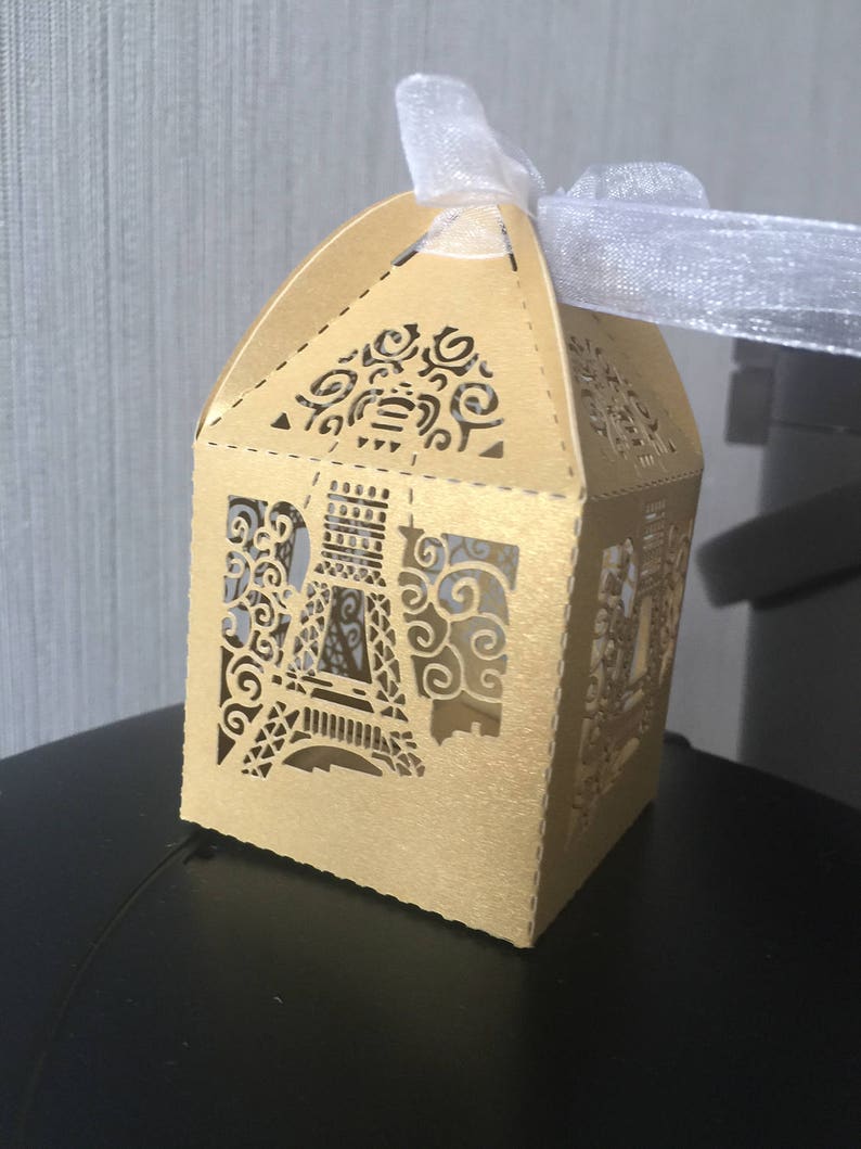 100pcs Gold Luxury Gift Box With Ribbon The Eiffel Tower Gift Boxes Wedding Favor Box Birthday Gift Box Baby Shower Cake Box Laser Cut Boxes