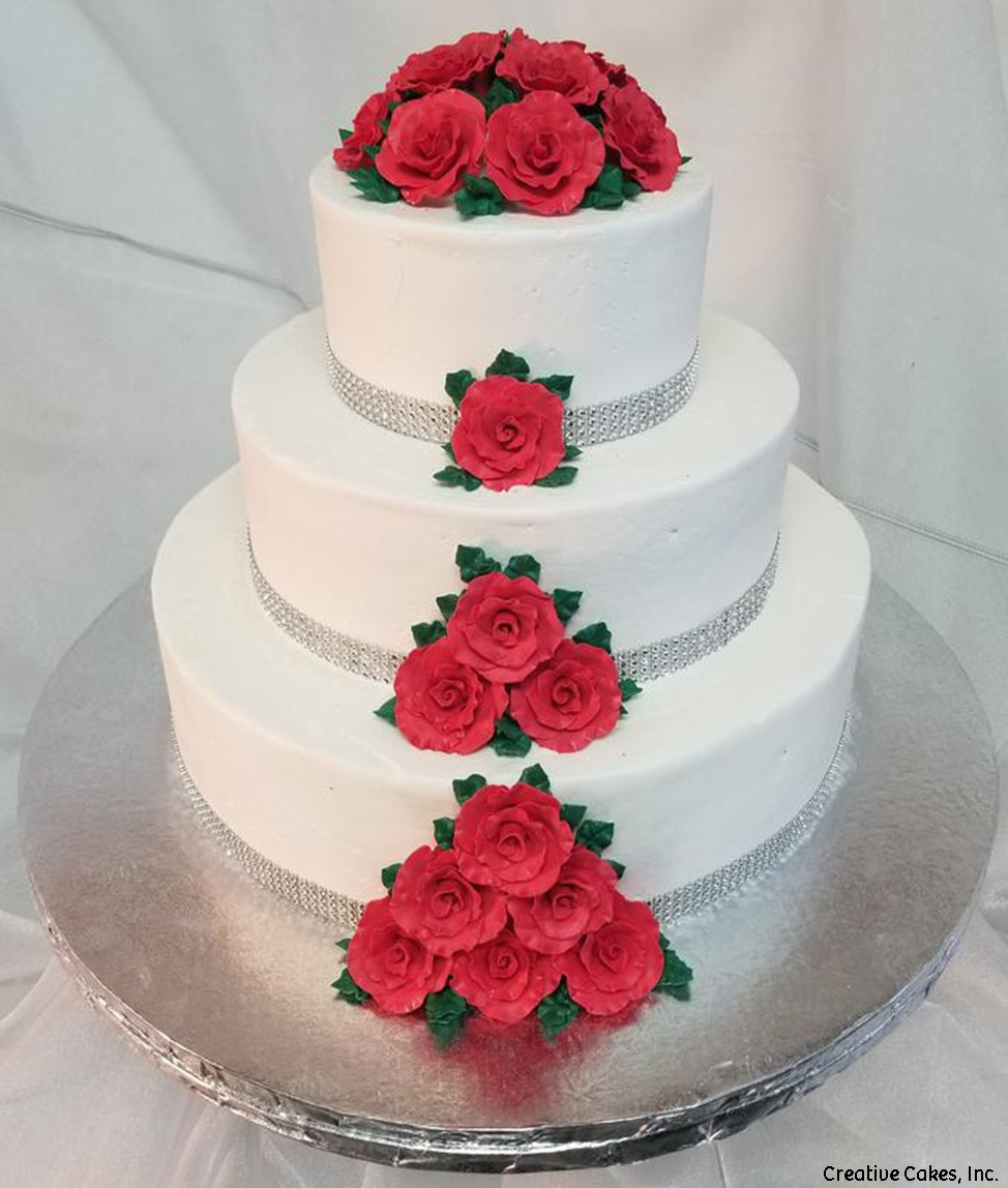 White Wedding Cake Red Roses Phxmarchforscience Com