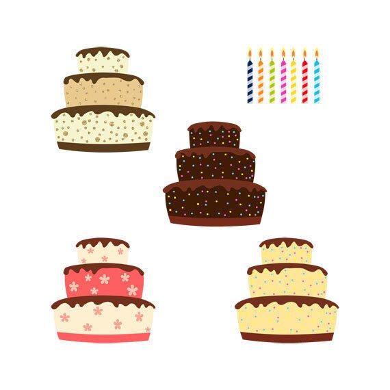Birthday Cakes Clip Art Set Dessert Food Icing Delicious Tasty Chocolate Decoration Illustration Png