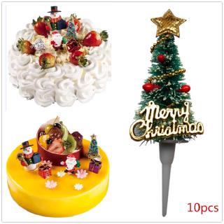 10pcs Christmas Cupcake Toppers Picks Cake Toppers Santa Tree Star Patterns For