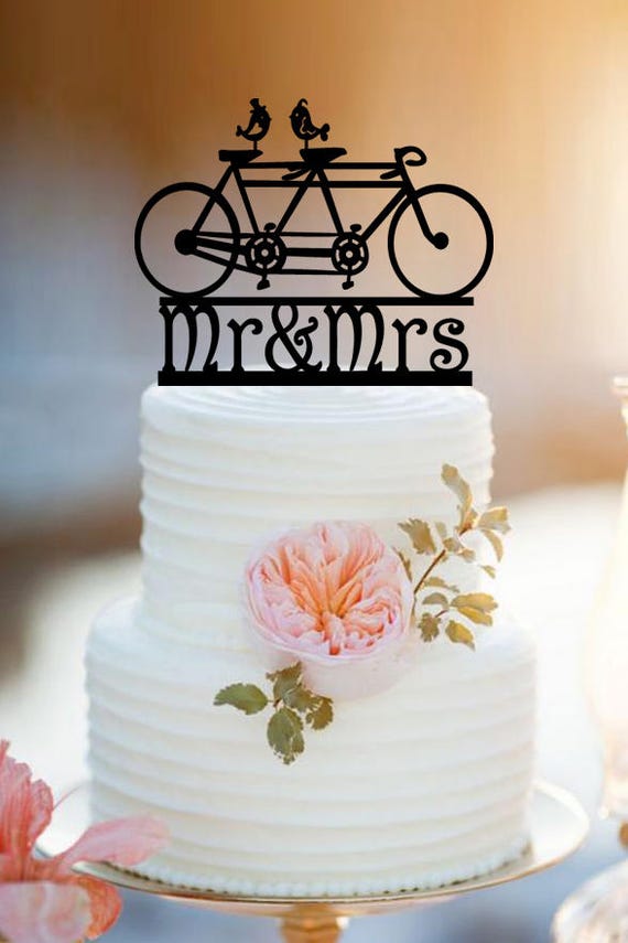 Love Birds With Bicycle Wedding Cake Topper Personlized Bride And Groom Cake Topper