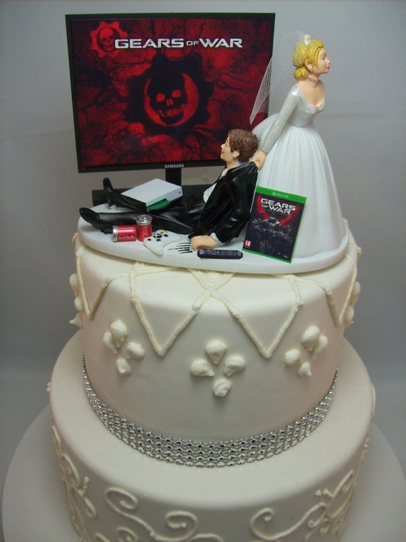 Gamer Funny Wedding Cake Topper Gow Video Game Gaming Junkie Addict Rehearsal Groom S Bride W Veil Groom New White Xbox 1 Tv Custom