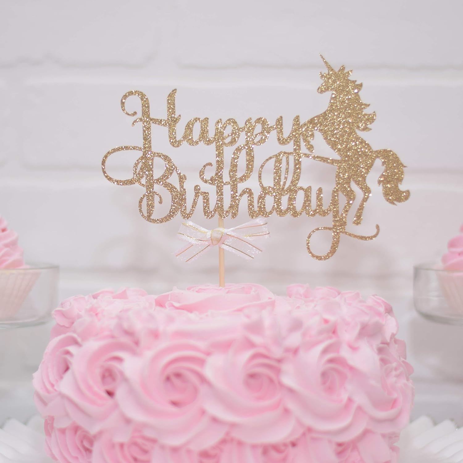 Amazon Com Gold Unicorn Birthday Party Cake Topper Happy