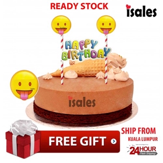 Isales 12pcs Emoji Party Happy Birthday Cake Cupcake Topper
