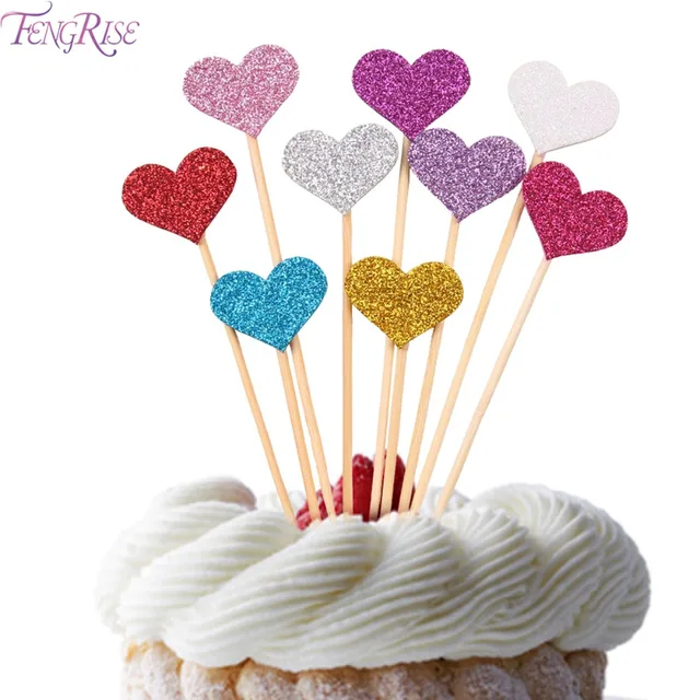 Us 4 67 Fengrise 40pcs Glitter Love Heart Wedding Cake Topper Souvenirs Birthday Party Decoration Wrapper Baby Shower Centerpieces In Cake