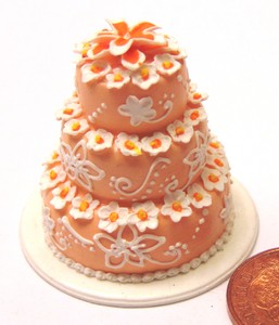Details About 1 12 Scale Orange White 3 Tier Wedding Cake Tumdee Dolls House Accessory J