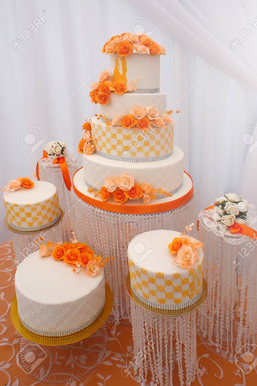 Wedding Cakes Big Beautiful Tasty Many Tier Decorated With Orange