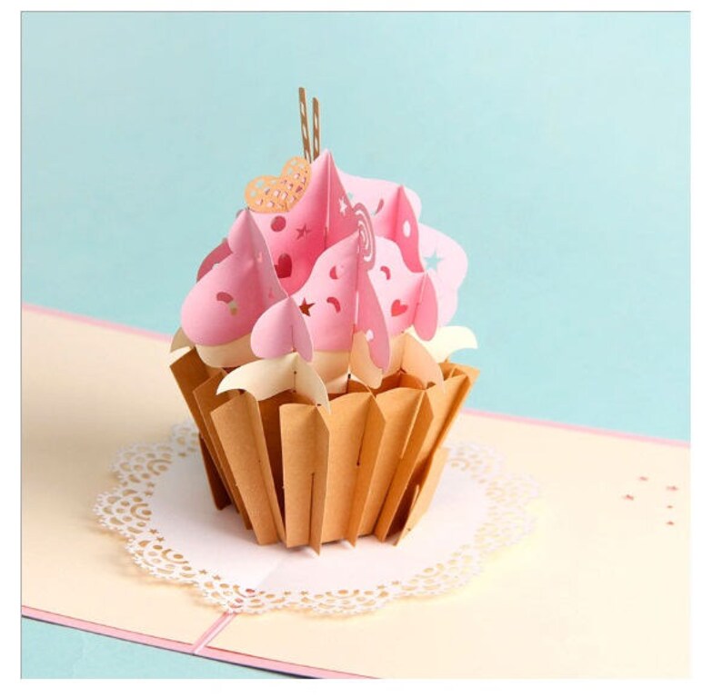 Handmade Origami Paper Craft Art 3d Pop Up Popup Pink Birthday Cake Cards Love Heart Star White Lace Brown Chocolate Valentines Gift For Her