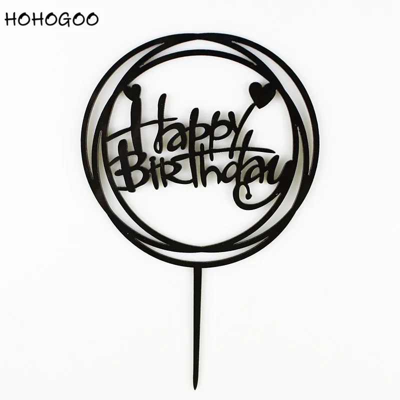Us 2 69 Hohogoo1pc 3 Colors Happy Birthday Cake Topper Acrylic Round Square Pattern Gold Pink Black Birthday Party Cake Decoration Tools In Cake