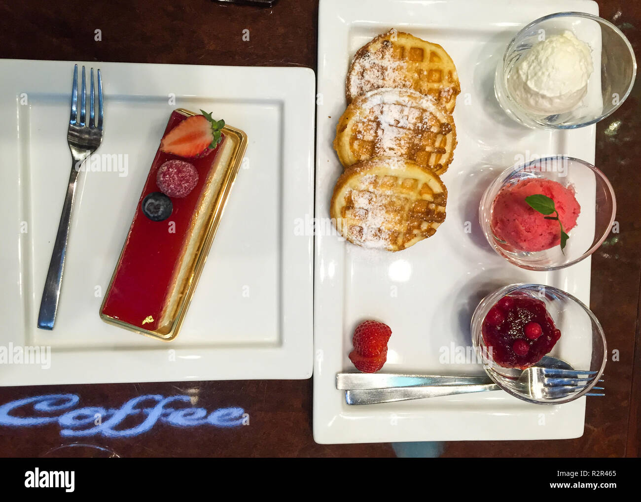 Sweet Cakes With Ice Cream At Coffee Shop In Tokyo Japan