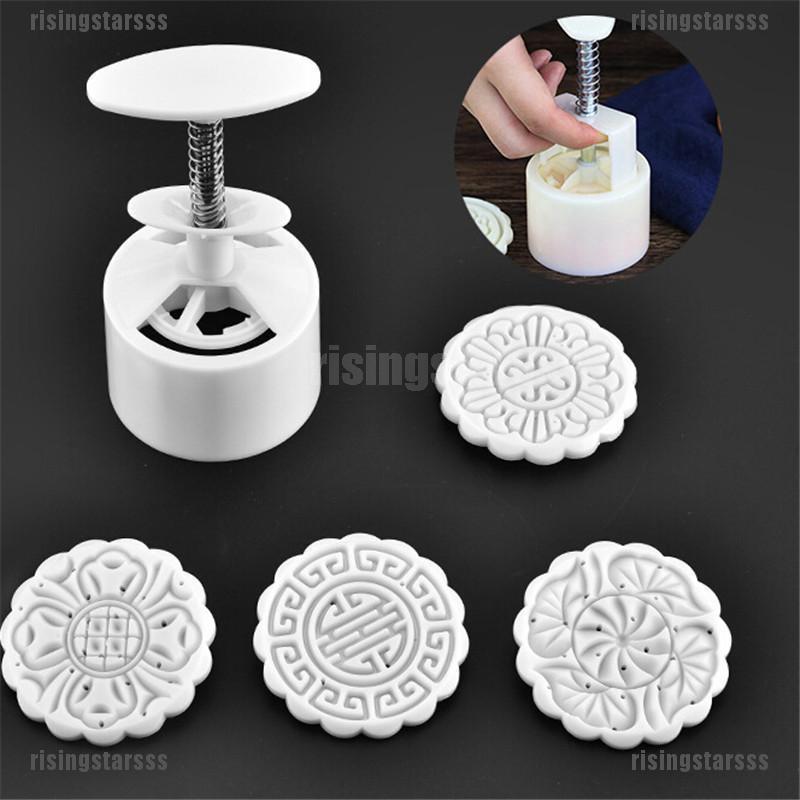 Rssg 4 Stamps Flower Mooncake Moon Cake Diy Round Mold Baking Craft Tool Set